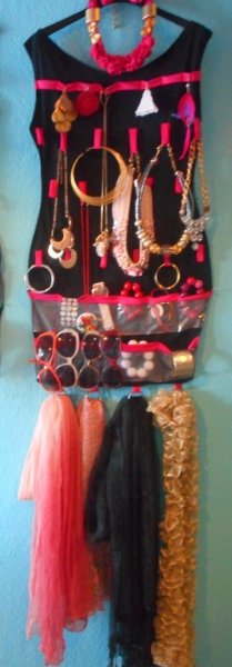 Mérete 45×80 centi és természetesen az én szobámban 5 darab is lóg a falon és lassan készül az 6. mert olyan csodás így rendezetten látni a bizsujaimat 😀 És külön varrtam tartót az óráimnak és a sálaknak is… én nem az a fajta varrónő vagyok akinek ruhája nincsen… én legelőször magamnak varrok utána a megrendelőnek… 😀