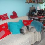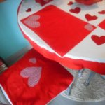 A terítőket, párnahuzatokat, üléshuzatot már pár éve varrtam maradék anyagokból de minden évben előveszem őket erre a pár napra.. és mindig varrok hozzá valamit.. így bővül a Bálint napi dekorációm évről -évre ..